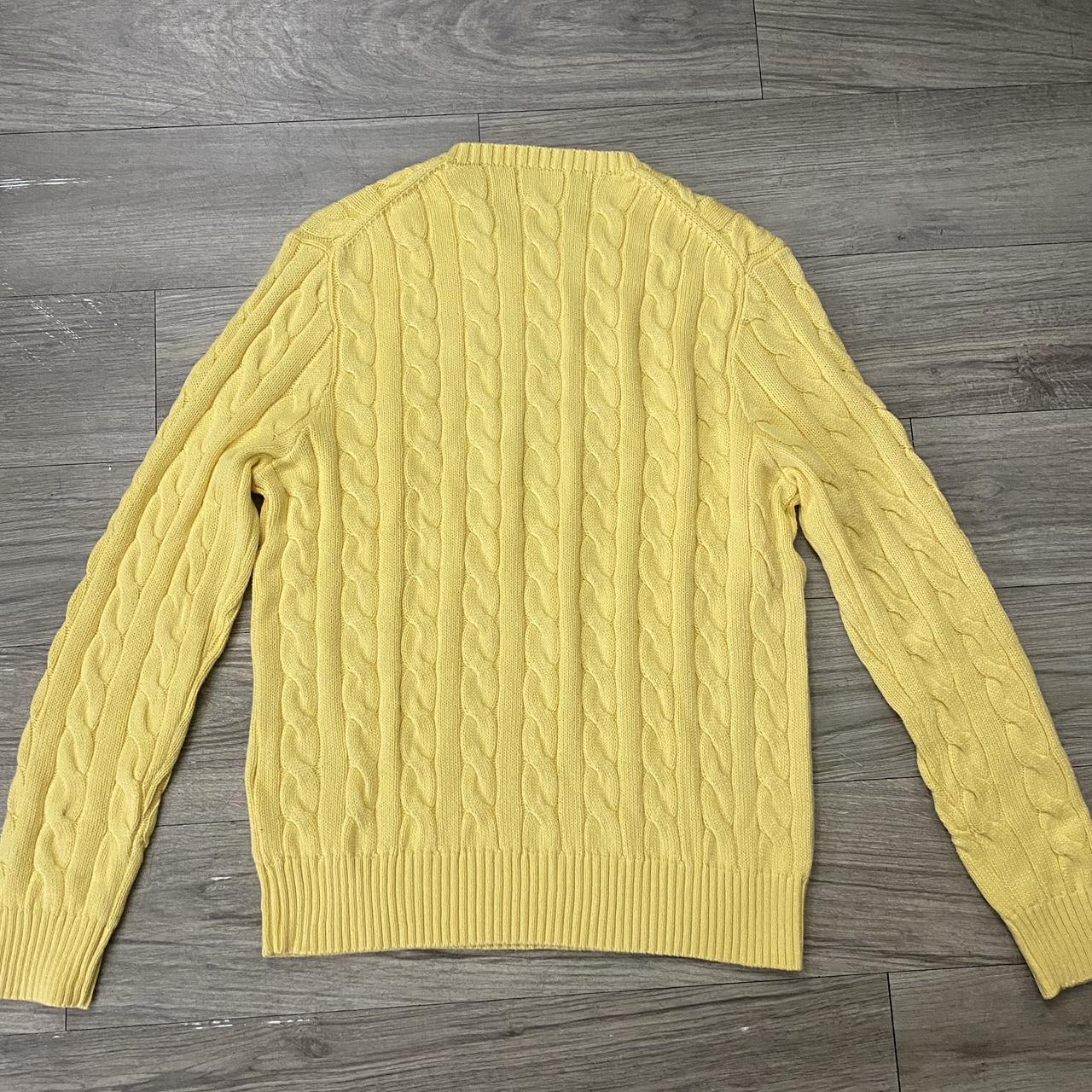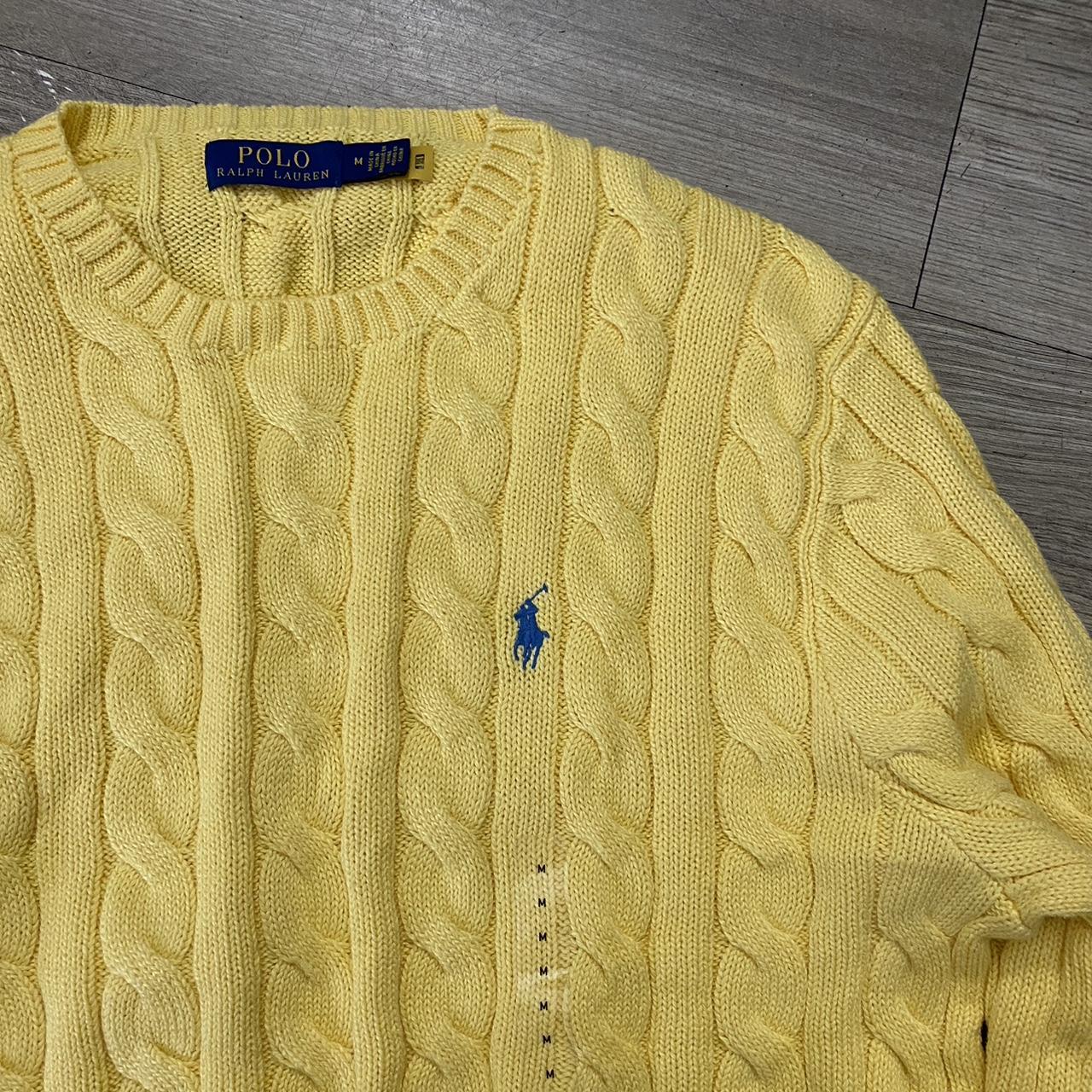Crafted in a clear yellow , it features the iconic red embroidered Polo pony on the chest and a timeless cable-knit pattern. Made from soft, durable fabric with ribbed cuffs and hem, this sweater offers a clean, versatile look perfect for everyday wear or layering in colder weather.